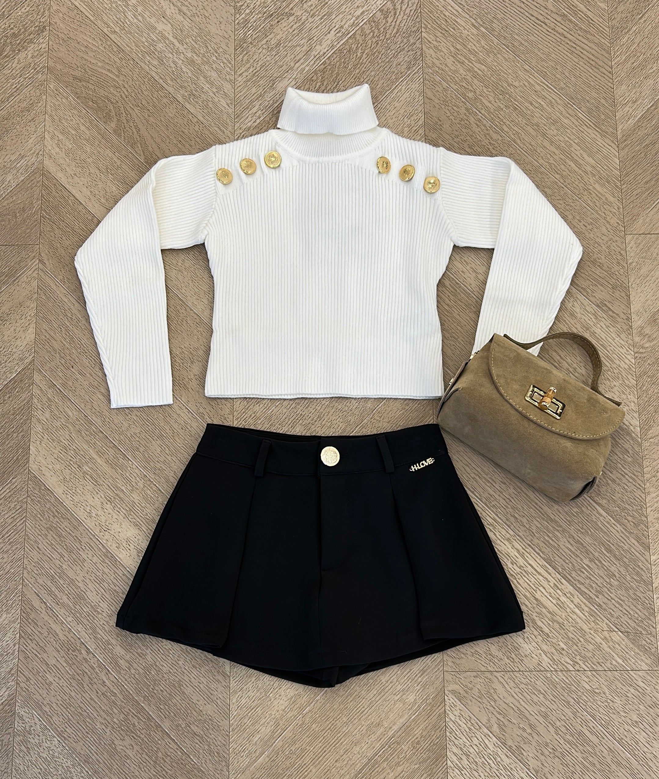 Short empire nero per bambina, perfetto per le giornate estive e le occasioni speciali. Il design elegante con vita alta valorizza la silhouette, mentre il tessuto morbido garantisce comfort durante il gioco e le attività quotidiane. Ideale da abbinare con t-shirt, magliette o body per creare look versatili e sofisticati. Un capo essenziale che unisce stile e praticità per la piccola fashionista.